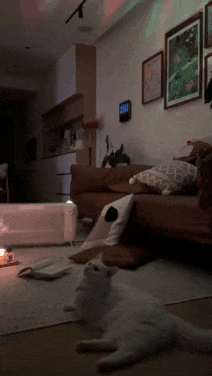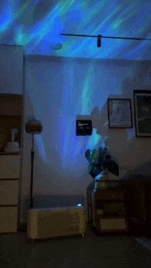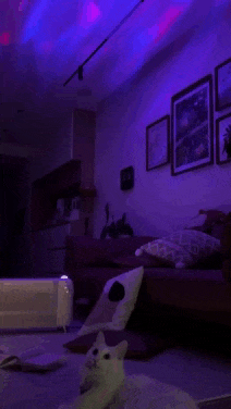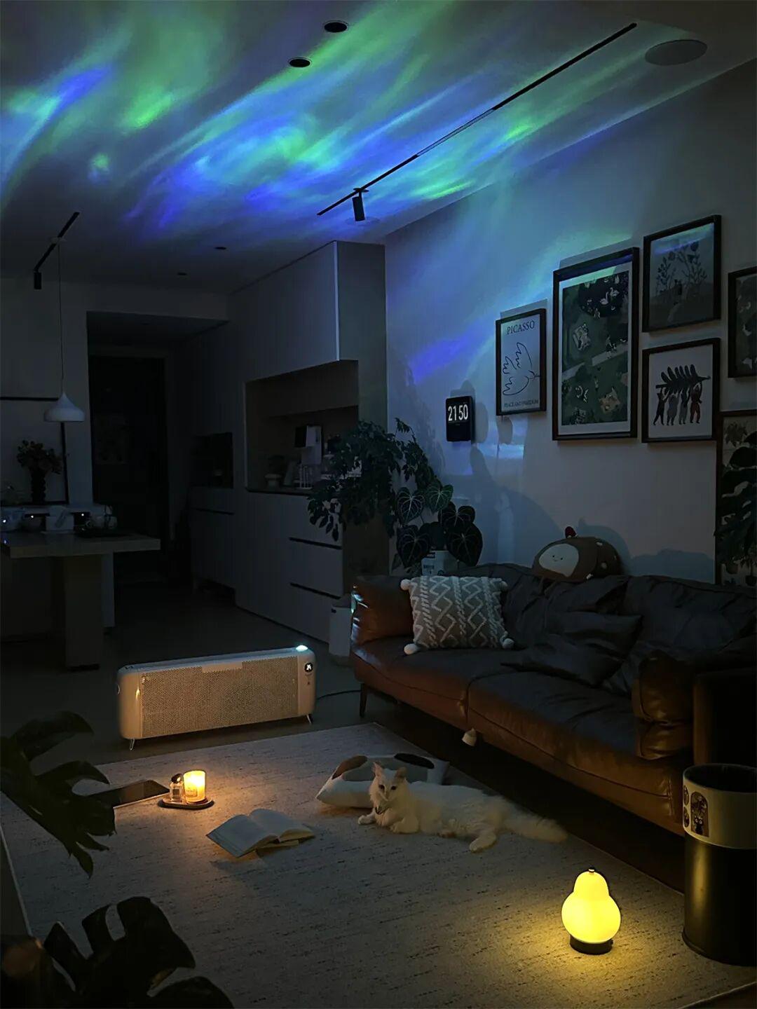 晚上还能打开取暖器的极光氛围灯给猫咪玩。