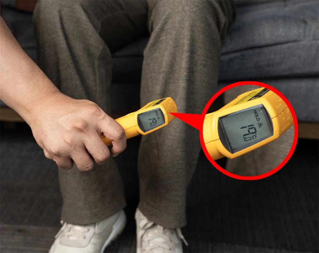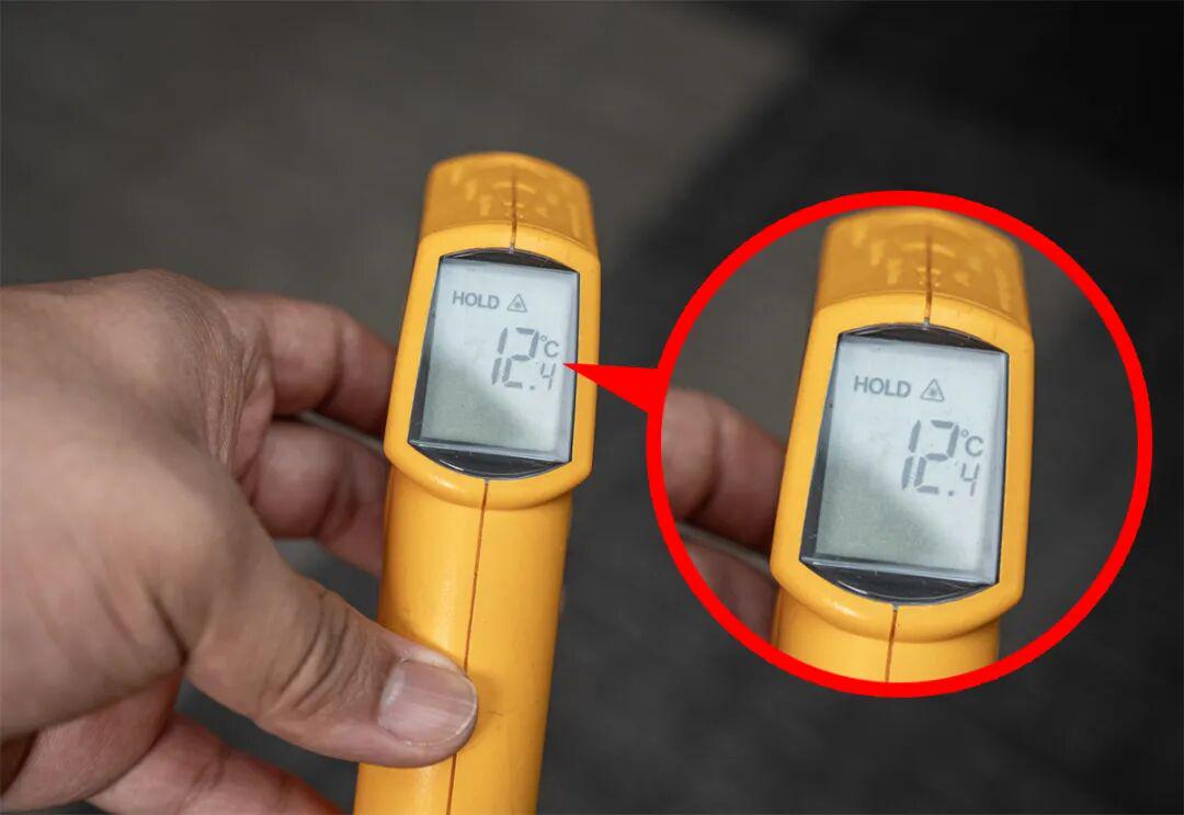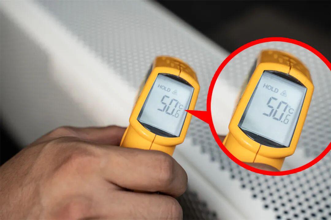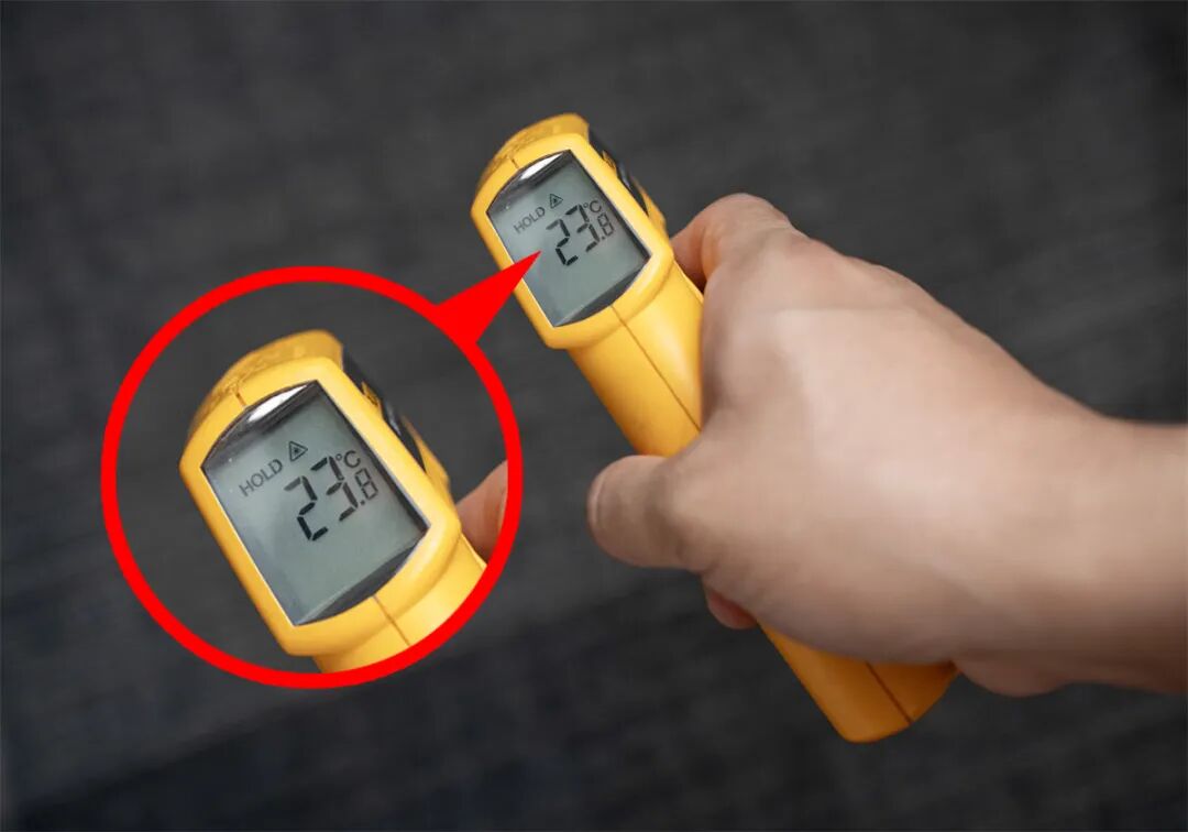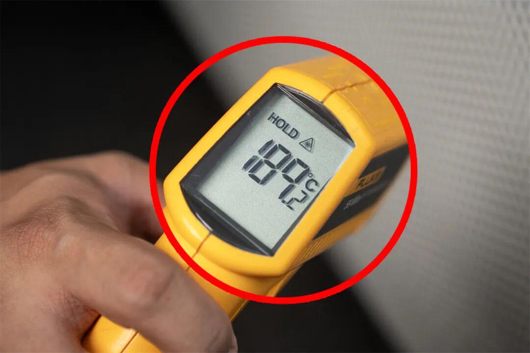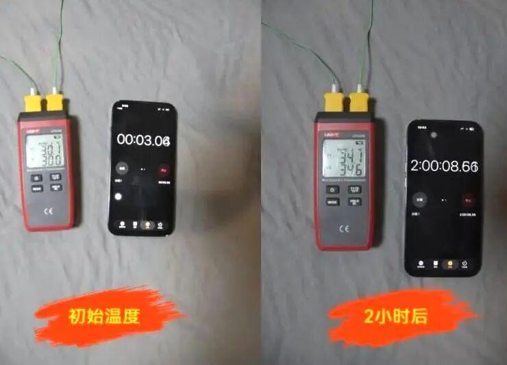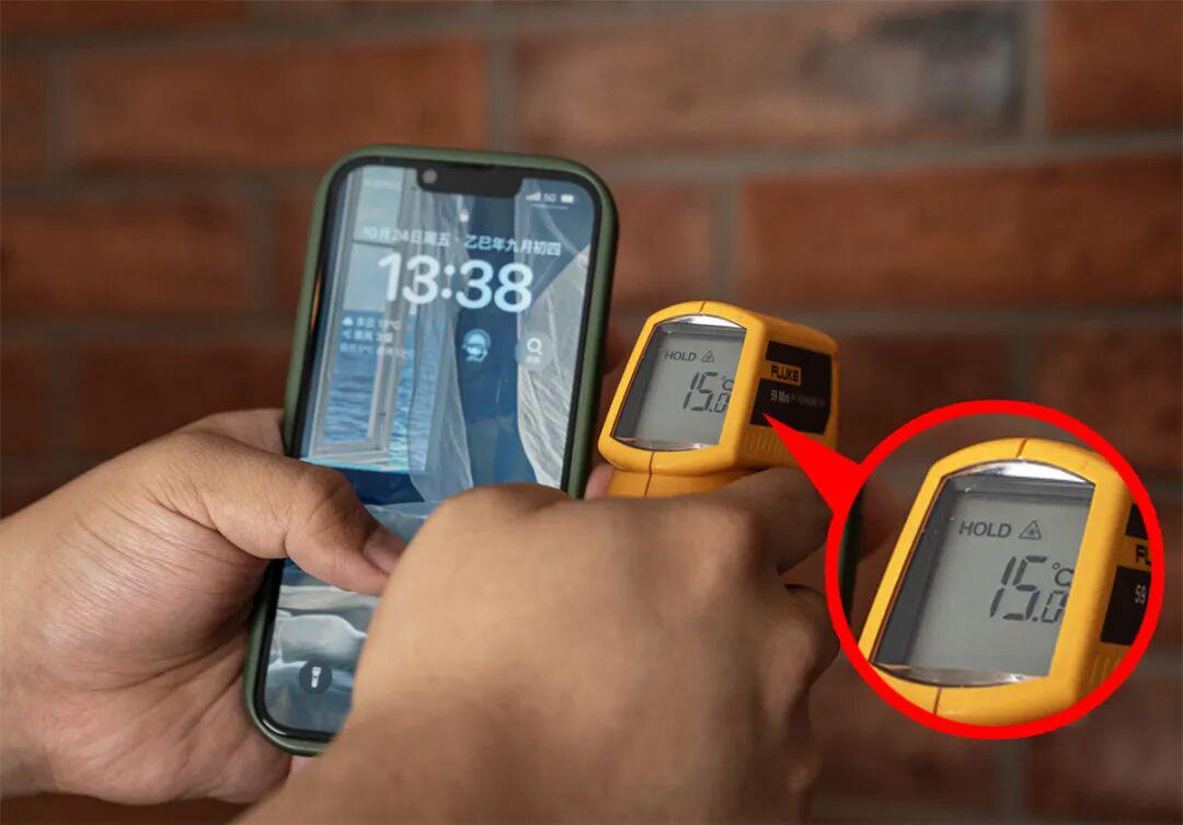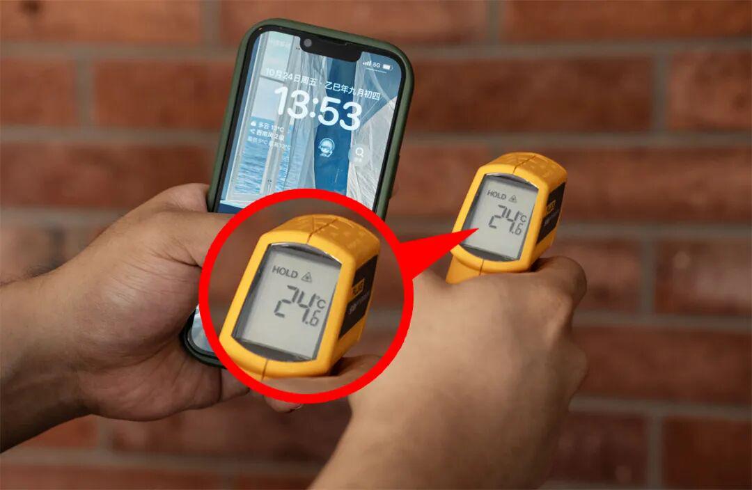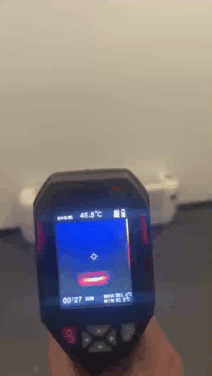我们也实测:开机-开启温度枪-检测,半分钟的功夫,内部升温如此快!