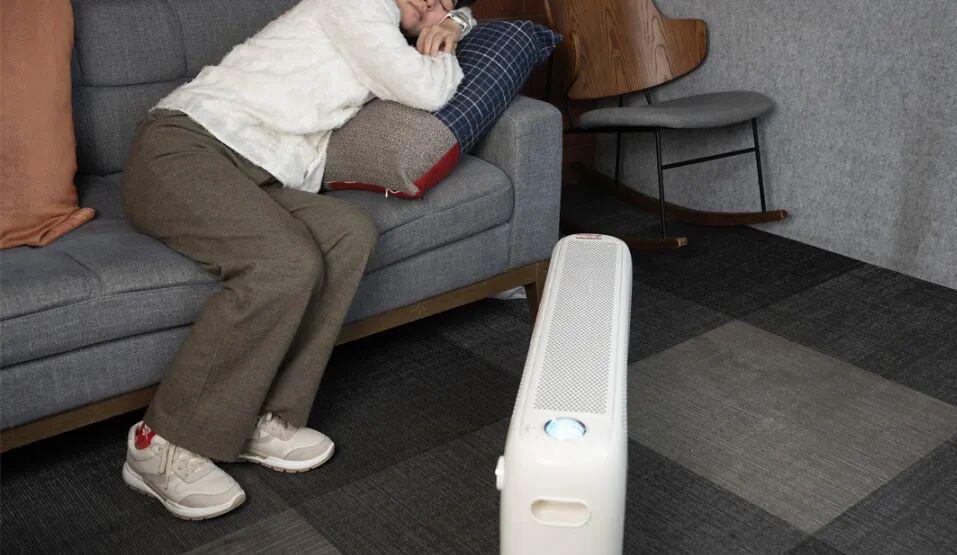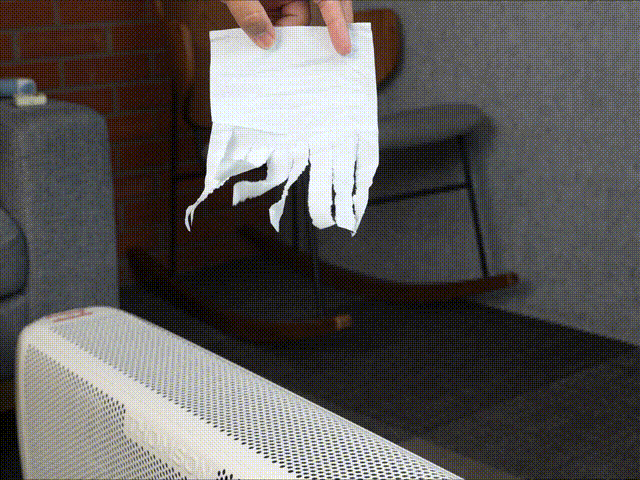 加热后的空气密度减小,变得轻而向上走,冷空气下沉被电暖器加热,全程不需要风扇吹,利用空气密度差形成的自然流动循环,温暖效果堪比地暖,让整间屋子都是均匀温暖的!