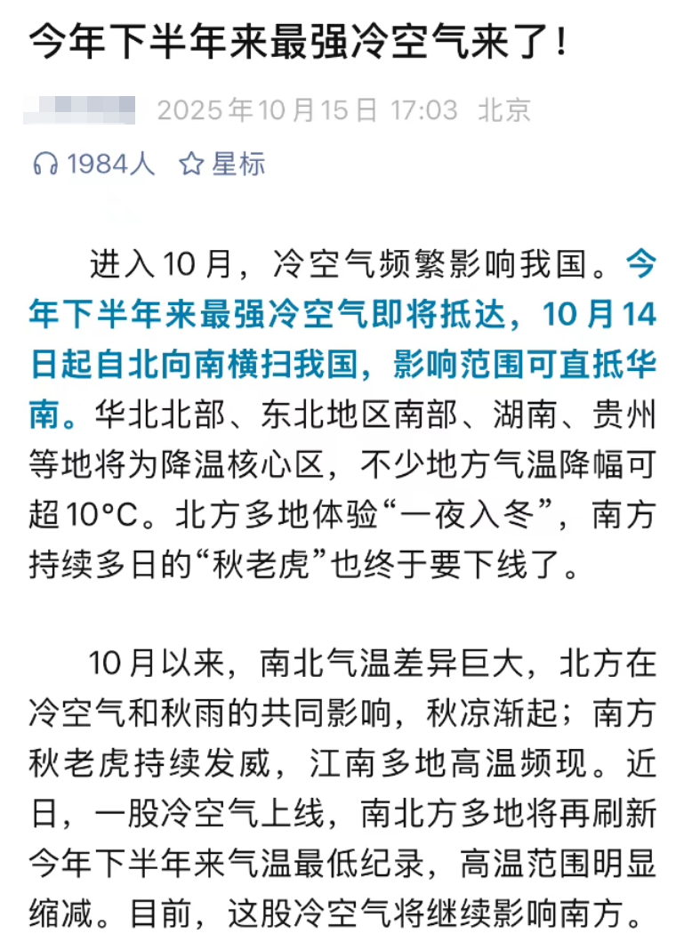 冷冷冷!今年全国大范围的气候异常真是让每一个人都搓手不及。连下了几个秋雨然后降温火星策略,简直是冰箱速冻模式!