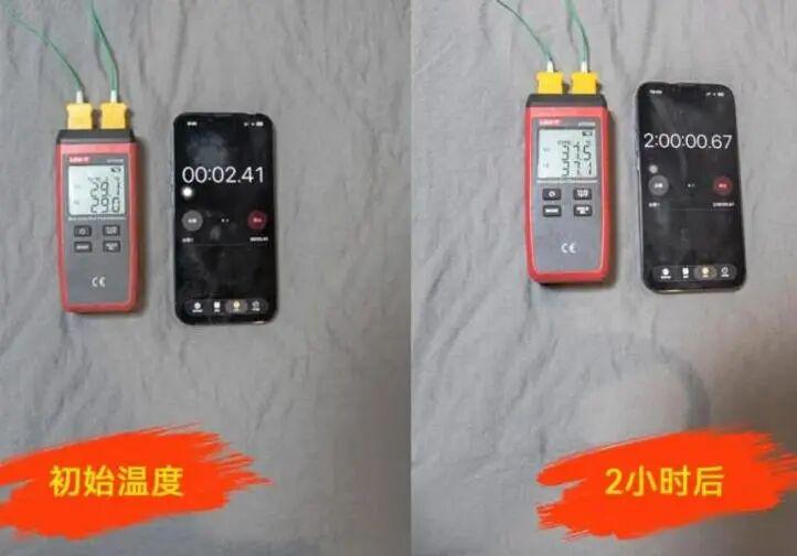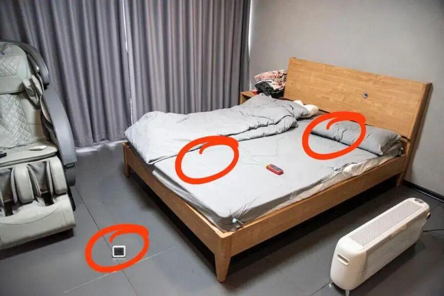 ✅温度计分别测人体常在的枕头、被子,以及离床50cm来回走的位置。