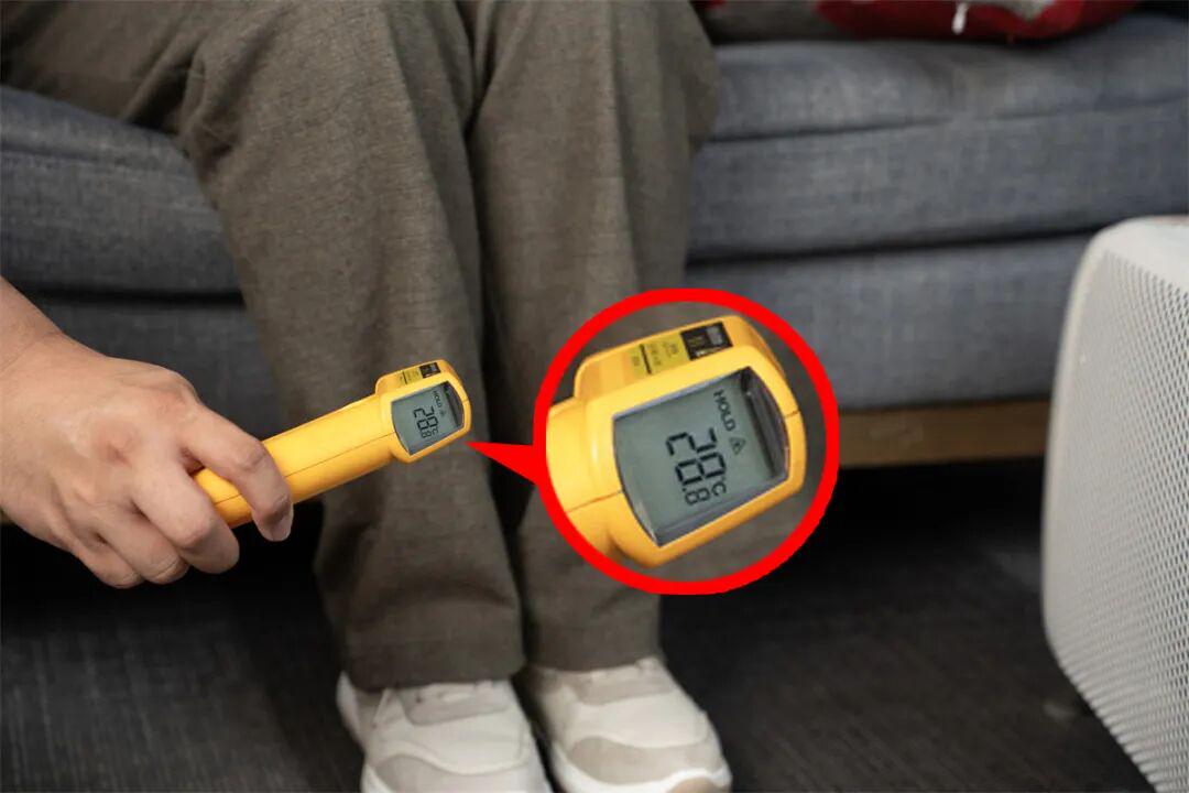 为了更客观公正,我们请同事将汤姆逊H1Pro电暖器拿回家,在卧室用他自己的电暖器做对比测试: