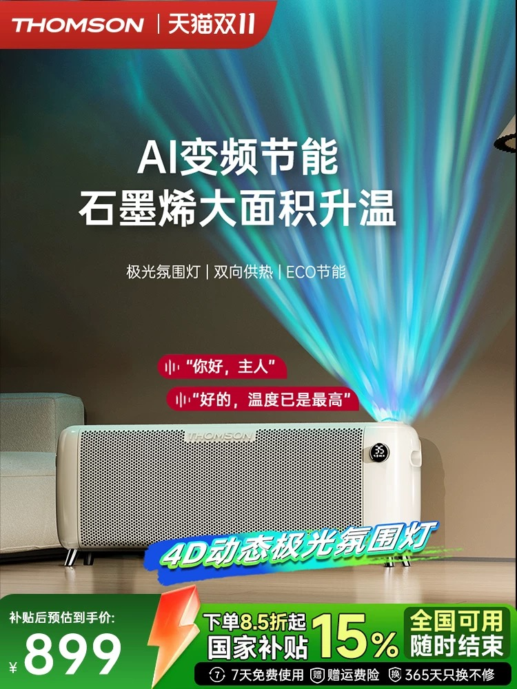 汤姆逊在电暖器上内置了【极光发生器】,4D动态极光,让你足不出户就能身临其境的欣赏北欧极光!
