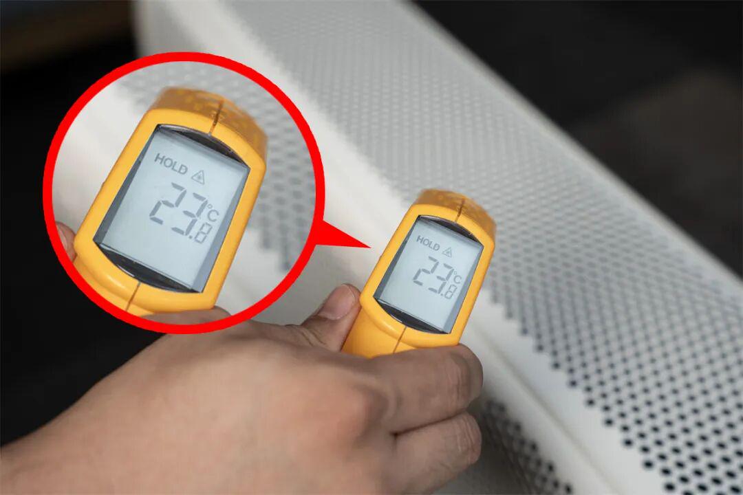 为此我们也来测下【全屋温度】:在十五平米左右的房间里,使用汤姆逊电暖器15分钟左右,墙壁升温了近9℃!