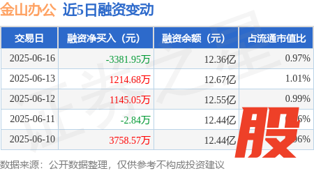 本站消息锦盈多,6月16日,金山办公(688111)融资买入7404.29万元,融资偿还1.08亿元,融资净卖出3381.95万元,融资余额12.36亿元,近20个交易日中有12个交易日出现融资净买入。